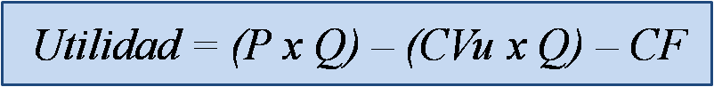 La utilidad para cualquier nivel de ventas, se puede determinar a partir de la siguiente ecuación: